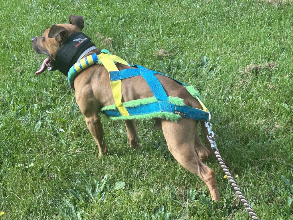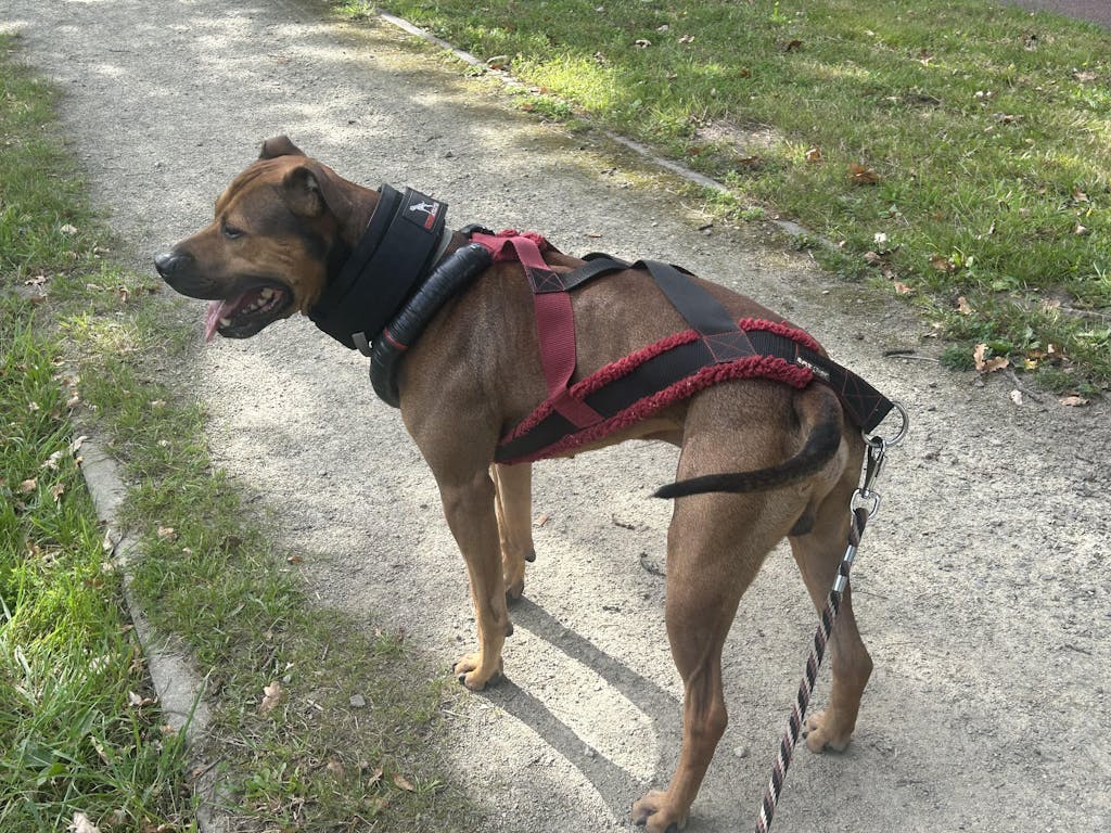 Due to gravity, the extra weight adds more resistance to your dog's workout. This forces your dog's muscles to work a little harder; increasing the intensity of the training (and gains). The wide 3" collar distributes the weight naturally across your dog's neck making it feel lighter than it really is. This challenges their muscles without limiting their ability to move naturally.