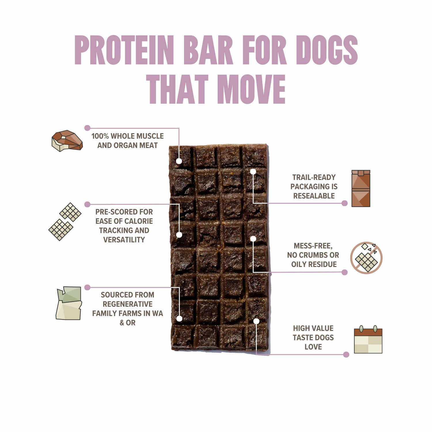 The Ryōken Instinct Lamb Treat Bar is a high value performance treat designed specifically for active dogs. They are made with whole muscle meat and organs from ethically sourced animals. These Ryōken Instinct bars were specifically designed to fuel dogs that move. They deliver sustained energy for long days outside training. And they're easy to pack, portion, and feed. You and your dog are going to love them!
