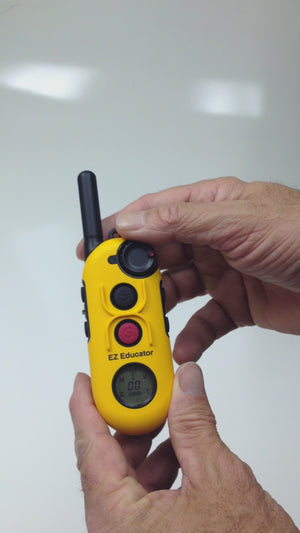 The EZ 900 Easy Educator is a modern remote trainer designed with safety in mind. Novel features like the maximum stimulation setting and lock and set provide safety from accidental overstimulation of the dog. This medium-range trainer is loaded with unique features making it the most humane and effective trainer available.