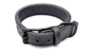 Constructed from the very best bridle leather on the planet, the collar is 9-10oz thick and securely stitched using heavy nylon thread. The hardware is 100% mold poured brass (not welded), then treated in a rare black finish to give it a uniquely high-grade & exclusive appearance while maintaining durability.