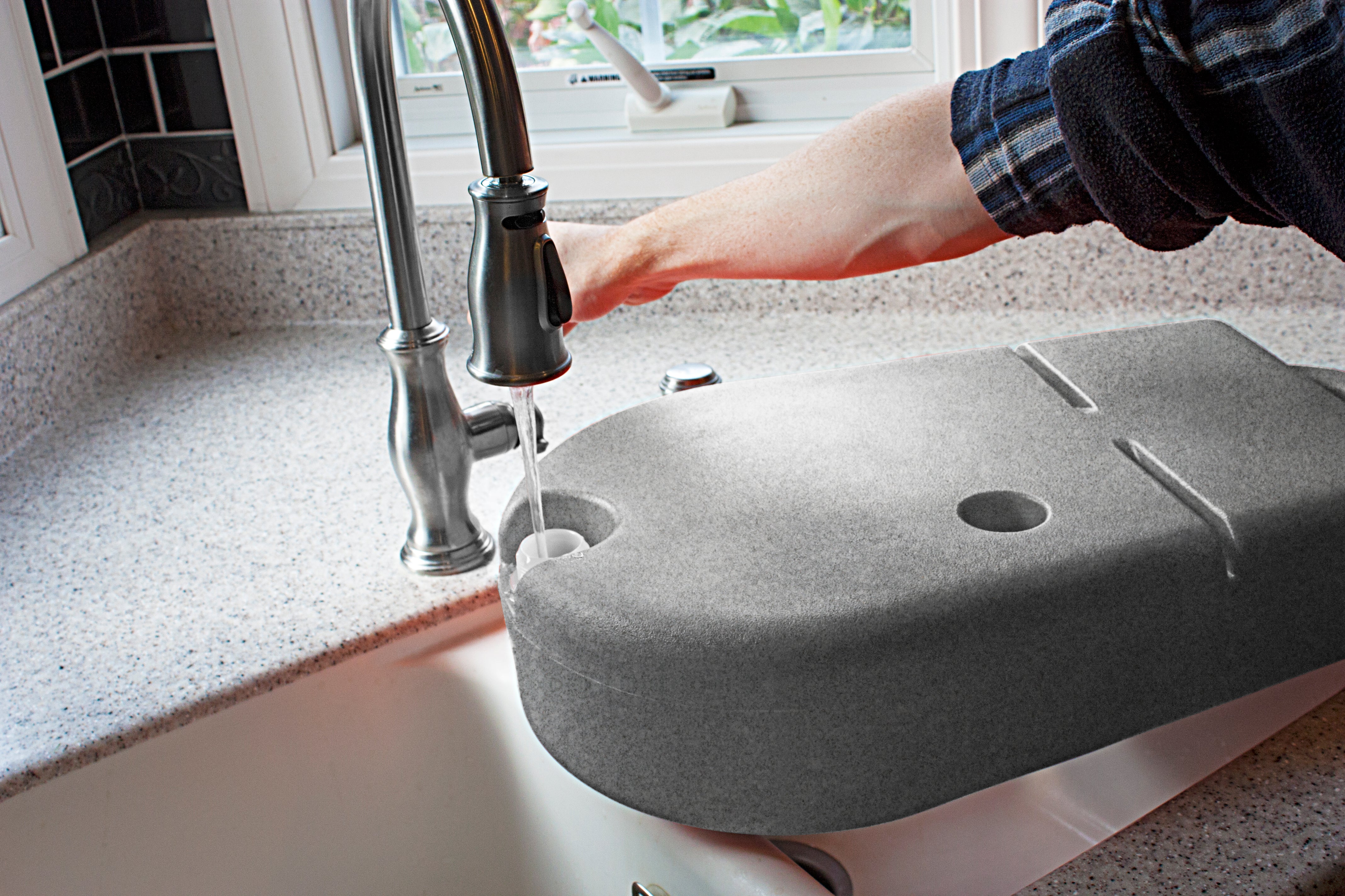 Once the Dine N Dash is laid down with the plug removed, the bowl area will fill with water. When the dog starts drinking, water will constantly backfill to ensure they don’t run out. When it’s time to go, just tilt the unit up to return leftover water inside and push the plug back in place. It’s great for trips to the woods, field, vacation, or even just as a regular food and water station at home.